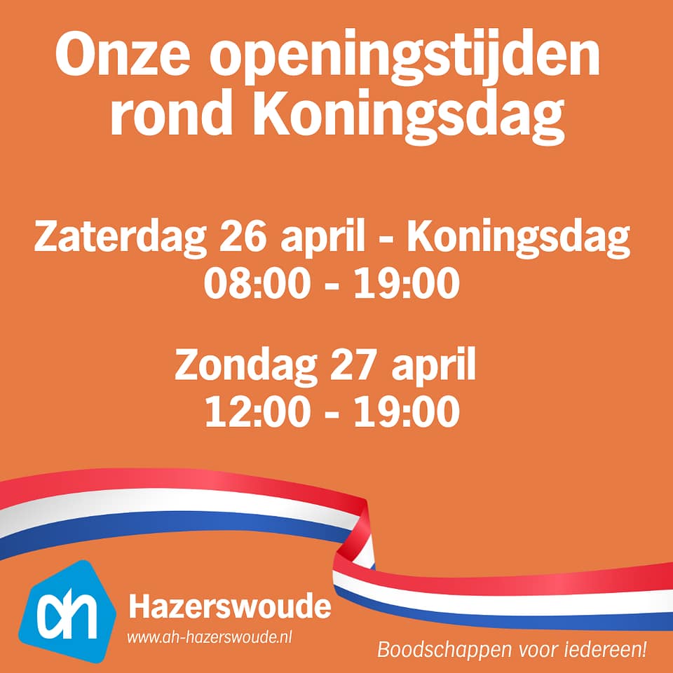 ๐ Albert Heijn Hazerswoude viert Koningsdag met jou โ let op onze openingstijden! ๐ณ๐ฑ